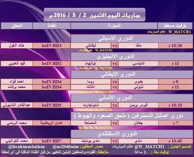 عالم المباريات On Twitter جدول مباريات الاثنين 2 مايو ملقا ليفانتي تشيلسي توتنهام جنوى روما فيردربريمن شتوتغارت جعلان المصنعة